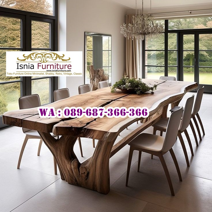 Meja rapat menjadi pusat kegiatan diskusi, tempat bertukar ide, gagasan, dan informasi antar anggota tim atau peserta rapat. Meja rapat, dengan desain dan ukurannya, dapat menciptakan suasana yang lebih formal dan profesional untuk pertemuan penting. Meja Rapat Kayu Utuh mempunyai tampilan desain yang elegan, mewah, dan alami sebab terbuat dari kayu trembesi solid yang terkenal kekuatan, daya tahan yang tinggi, dan pola serat yang indah dan unik. Permukaan meja yang besar dan luas cocok untuk meletakkan dokumen, laptop, dan peralatan lainnya yang dibutuhkan dalam rapat. Kayu trembesi dikenal memiliki kekuatan yang cukup baik dan mampu menahan beban berat, sehingga cocok untuk meja rapat yang sering digunakan. Tekstur dan warna kayu trembesi yang unik memberikan tampilan alami dan elegan pada meja rapat. Bentuk permukaan meja dan kaki meja yang unik dan indah membuat meja terlihat mewah. Meja rapat dari kayu trembesi utuh cocok dipadukan diberbagai interior ruangan kantor. Pilih Meja Rapat Kayu Utuh untuk menambah nilai estetika dan menciptakan suasana hangat dan alami pada ruangan kantor.