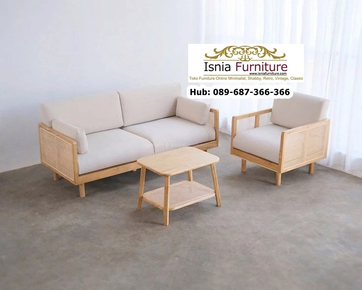 Kali ini kita memiliki produk set kursi tamu yang sangan menarik. Terdiri dari 1 loveseat dan 1 kursi tunggal, serta meja kecil. Berbahan dari kayu pilihan dan aksen anyaman rotan dengan warna bantalan busa yang senada memberi kesan hangat dan alami pada ruangan anda.