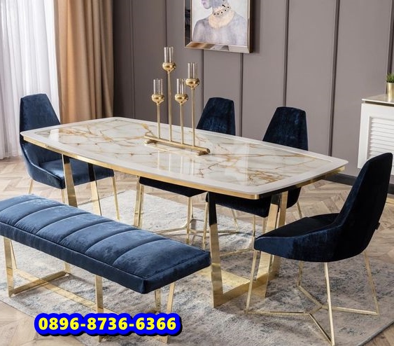 Meja makan yang terbuat dari bahan marmer dapat membuat ruangan lebih terlihat menarik dan moderen sebab tampilan dari bahan marmer yang begitu mewah, apalagi marmer yang kami gunakan memiliki kualitas terbaik tentu saja akan membuat anda dan keluarga merasa nyaman menggunakan meja makan ini. Meja Marmer Mewah Kaki Gold Persegi Panjang Terbaru ini merupakan meja makan yang paling banyak dicari sebab meja makan ini terbuat dari kombinasi bahan yang berkualitas yiatu marmer dan Stainless gold agar lebih terkesan moderen dan elegant.