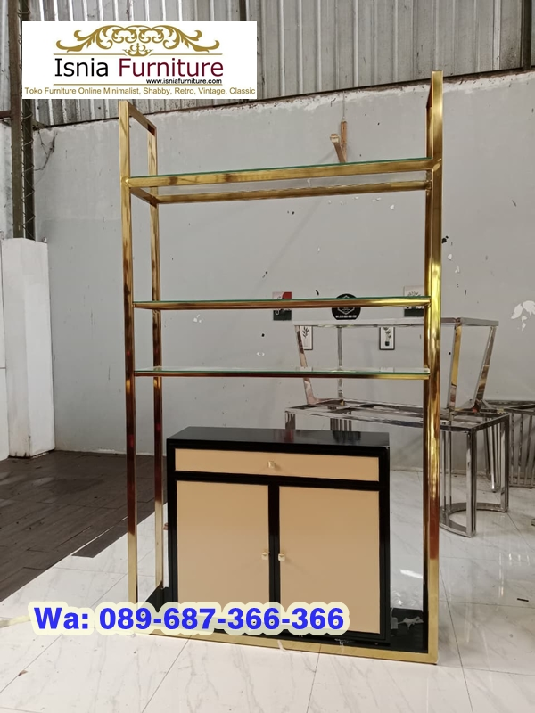 Rak Hias Stainless adalah salah satu pilihan aksesoris tambahan yang cocok untuk mempercantik ruangan Anda. Salah satu perabot furniture yang banyak dicari dan dikagumi karena mempunyai fungsi serbaguna misalnya untuk menyimpan barang berukuran kecil seperti sovenir, gelas, piring dan lain sebagainya. Selain fungsional, rak ini juga berperan besar sebagai elemen dekoratif. Dengan tampilannya yang glamor namun tetap minimalis, rak stainless mampu mengangkat estetika ruangan secara keseluruhan. Penataan dekorasi menjadi lebih rapi, terorganisir, dan terlihat mahal. Bahkan rak ini dapat menjadi pusat perhatian (centerpiece) di sudut ruangan yang sebelumnya tampak kosong.